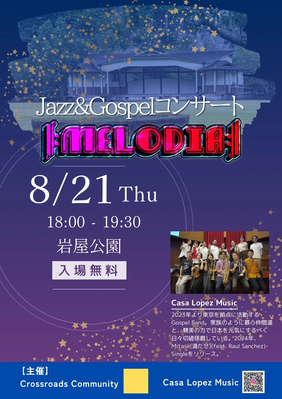 Join us for a beautiful summer evening in the park where you can unwind and savor time with family and friends. Let the soulful sounds of CASA LOPEZ MUSIC from Tokyo fill the air with vibrant jazz and uplifting gospel melodies. Bring a blanket, your favorite meal or snacks, and experience the joy of live music under the warm skies. It's the perfect way to connect, relax, and celebrate community this summer!